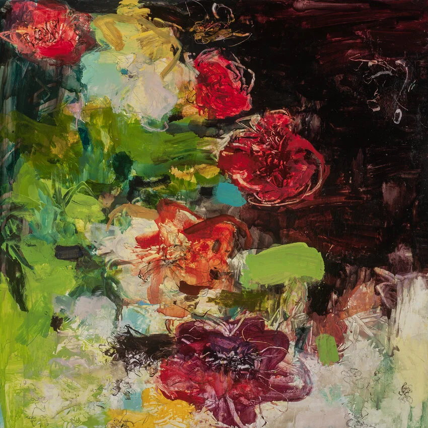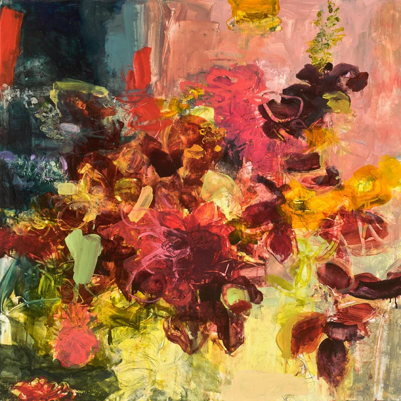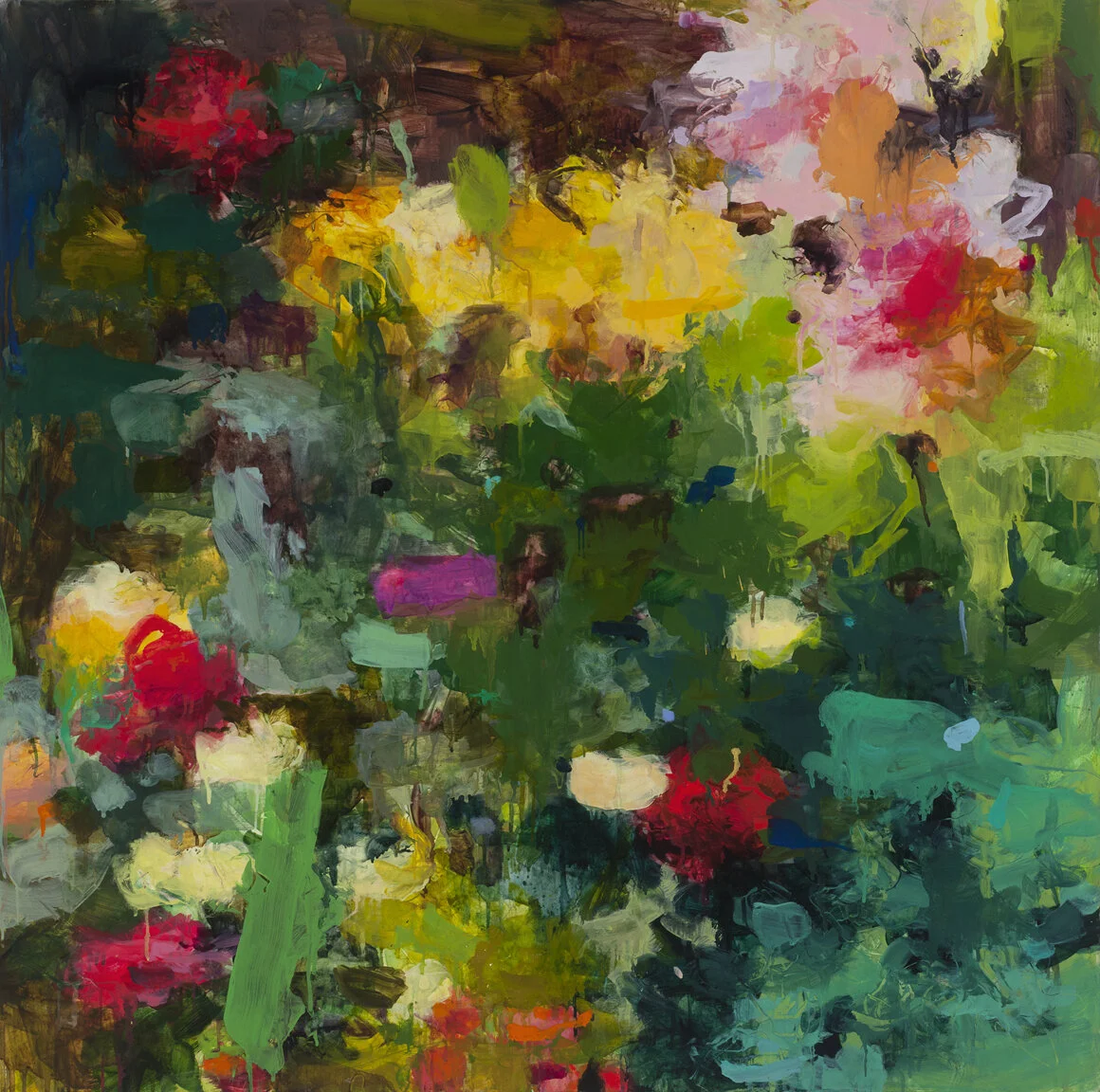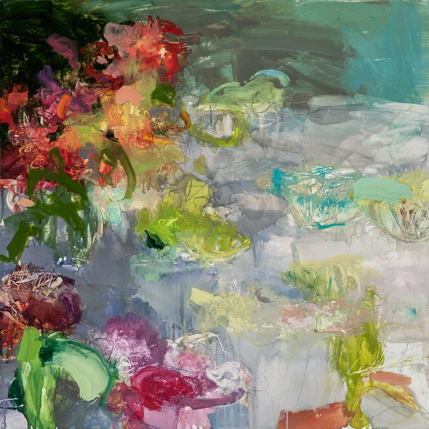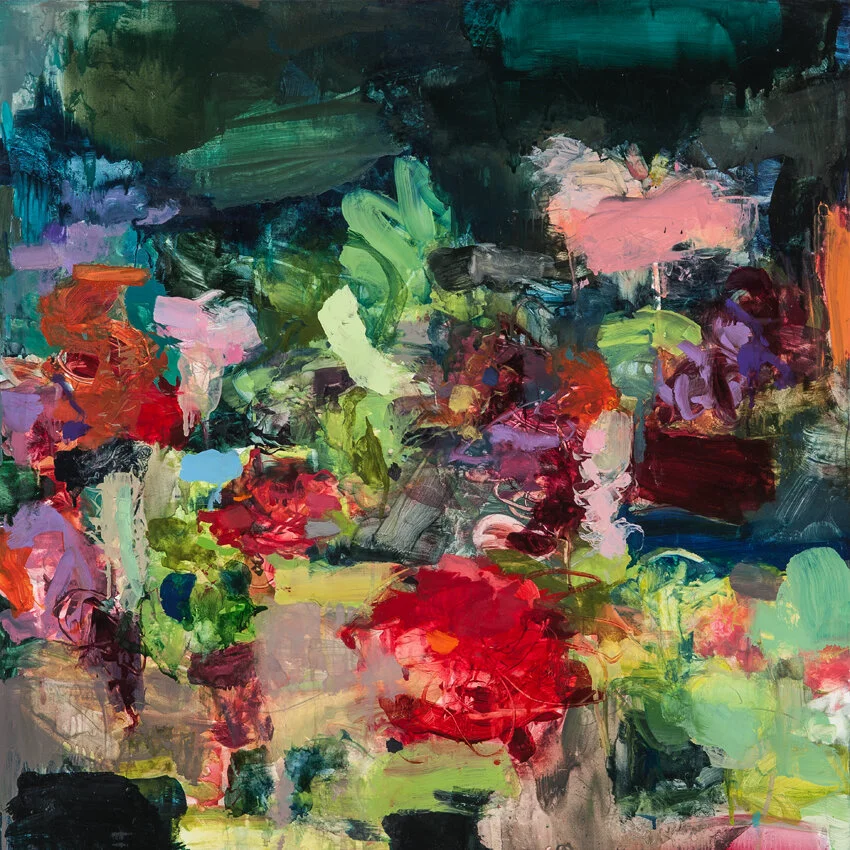 I embrace the notion of beauty and create luminous, lush, layered surfaces outside painting plein-air from spring to fall. I paint and find inspiration watching the lifecycle of nature. The flowers and plants act as a catalyst, allowing me to manipulate paint and create a dance between abstraction and representation. My garden is my sanctuary. An intuitive approach of playful and energetic mark making begins a process of looking, layering, wiping away and building up of a surface celebrating the exuberance of color and line found within nature. Instead of depicting a time-anchored botanical or geographical exactitude I work in a series of three to seven sittings welcoming weather and the passage of days to transform my viewpoint. The garden serves solely as a guide for my organic process within my outside studio.